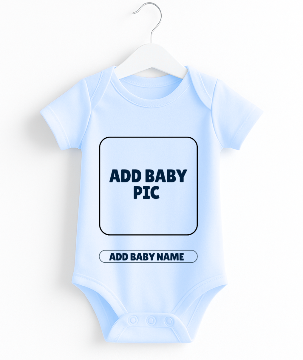 Create a truly special keepsake with this adorable personalized baby onesie. Designed to feature your baby’s photo and name, it’s a perfect blend of comfort and sentiment—ideal for everyday wear, baby announcements, or gifting.